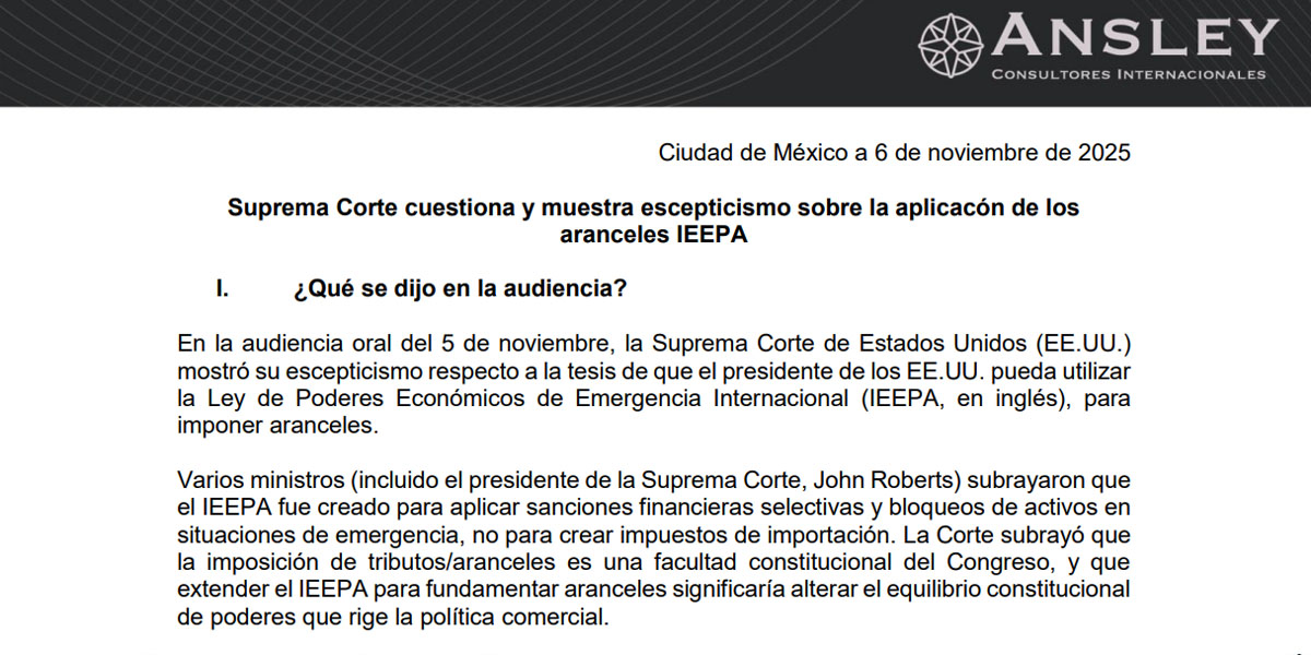 Suprema Corte cuestiona y muestra escepticismo sobre la aplicacón de los aranceles IEEPA...