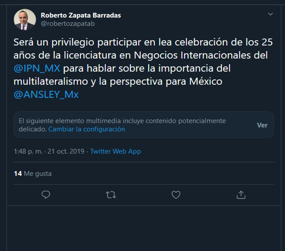📅 8 de diciembre, ⏲️ 17:00. Conferencia «El futuro del sistema multilateral de comercio y la OMC». Emb. Mtro. @robertozapatab , experto en el tema. Comenta: Dr. Francisco Javier Alejo. Facebook Live y YouTube pic.twitter.com/21hO6UoJCS